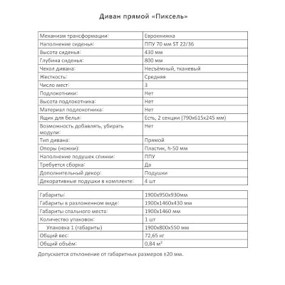 Диван Пиксель (Аквилон) продается в интернет-магазине mebel-online-irkutsk.ru по цене 30 299 руб. Есть доставка по Иркутску и Иркутской области. Возможность подъема на этаж и сборки уточняйте у менеджера по телефону 8(800)505-27-11.
